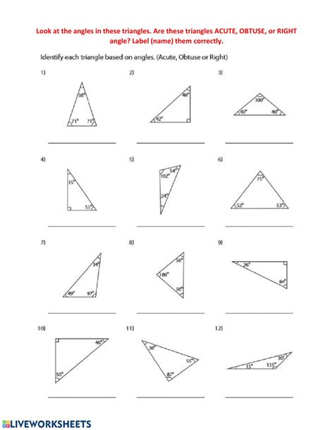 Web home » geometry » angles in a triangle worksheets. Help your maths students to understand the properties of triangles and their angles with this worksheet, suitable for both middle. For an acute triangle, all angles are <90°, a right triangle has one angle =90° and an obtuse triangle has one angle.