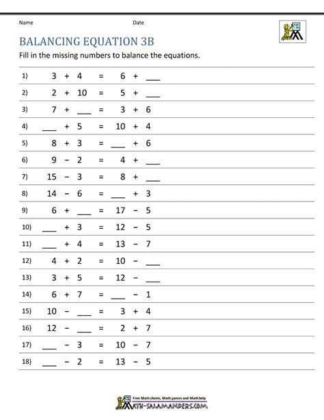 Balancing Math Equations Worksheet. Includes advice on how to tackle the questions and a fast. There are 23 chemical equations and 4 types of equations:.