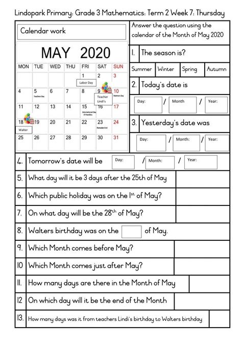 ️Grade 3 Calendar Worksheets Free Download Gambr.co from gambr.co